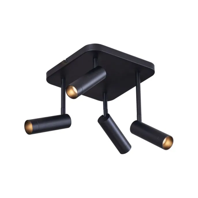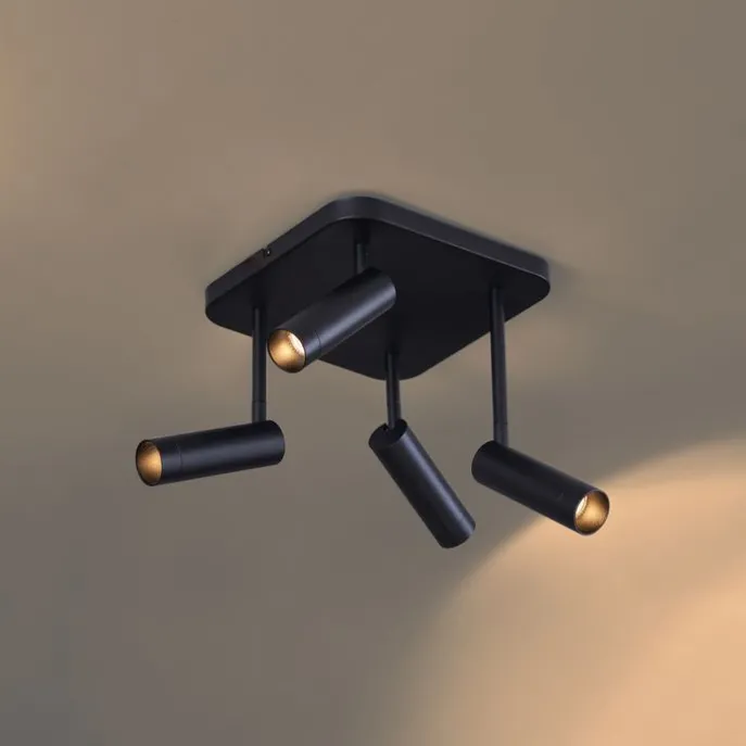 Afgeronde plafondspot zwart GU10 35mm 4-lichts draai- en kantelbaar – Kate