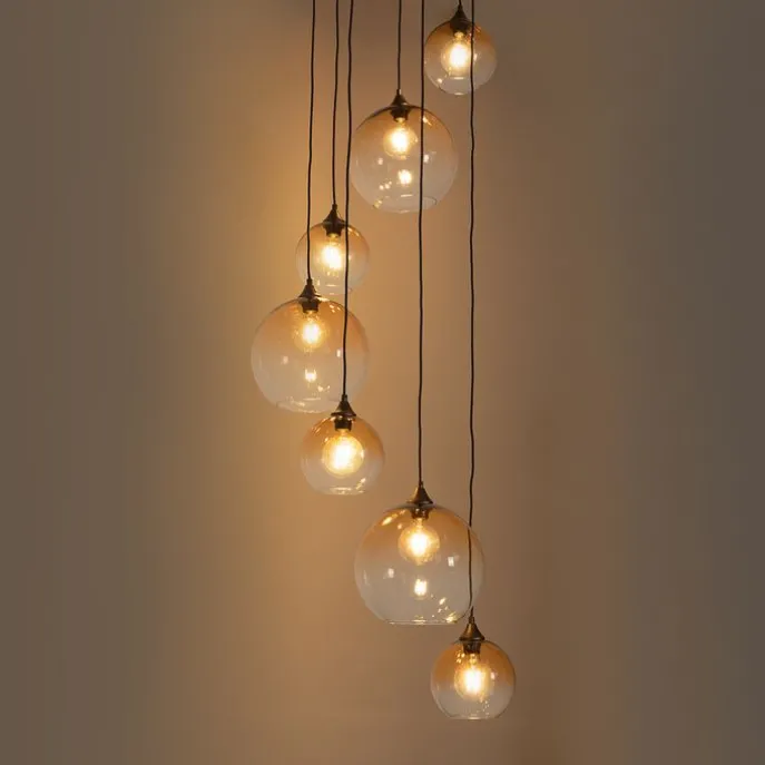 Art Deco hanglamp donkerbrons met amber glas 7-lichts – Sandra