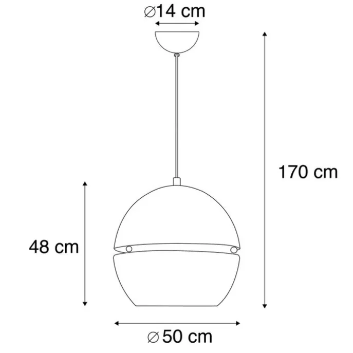 De retro ’70 hanglamp is een mooie ronde lamp, gemaakt van aluminium met een gouden / messing afwerking. Het is een modern ontwerp in een retro jasje! In het midden van de bol zit een horizontale uitsparing, waardoor een mooie lichtval ontstaat. prachtig in de hal of eethoek. De ronde lampenkap heeft een diameter van 50 cm. De totale hoogte van de lamp is 170 cm en kun je eventueel bij de installatie inkorten op de gewenste hoogte. De diameter van de montageplaat is 14 cm. Deze hippe hanglamp heeft twee grote E27 fittingen en wordt exclusief lichtbronnen geleverd, zorg dat je deze er dus nog bij besteld (max. 60 Watt). Deze opvallende gouden hanglamp Slice is een mooie aanvulling voor jouw interieur.