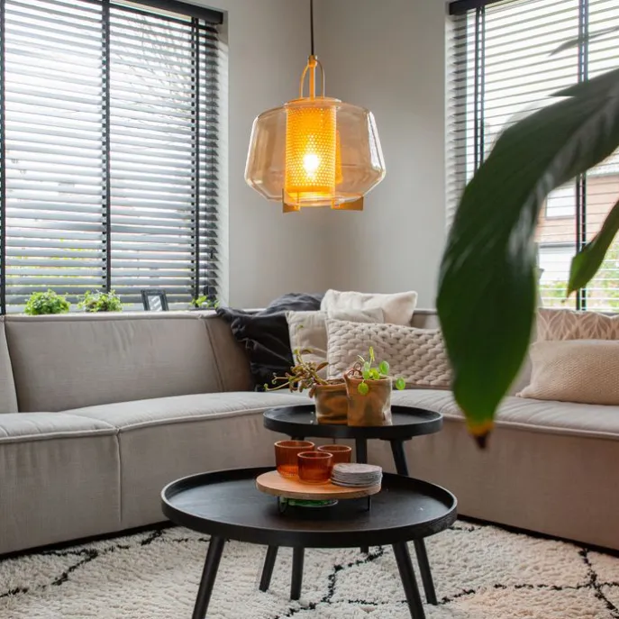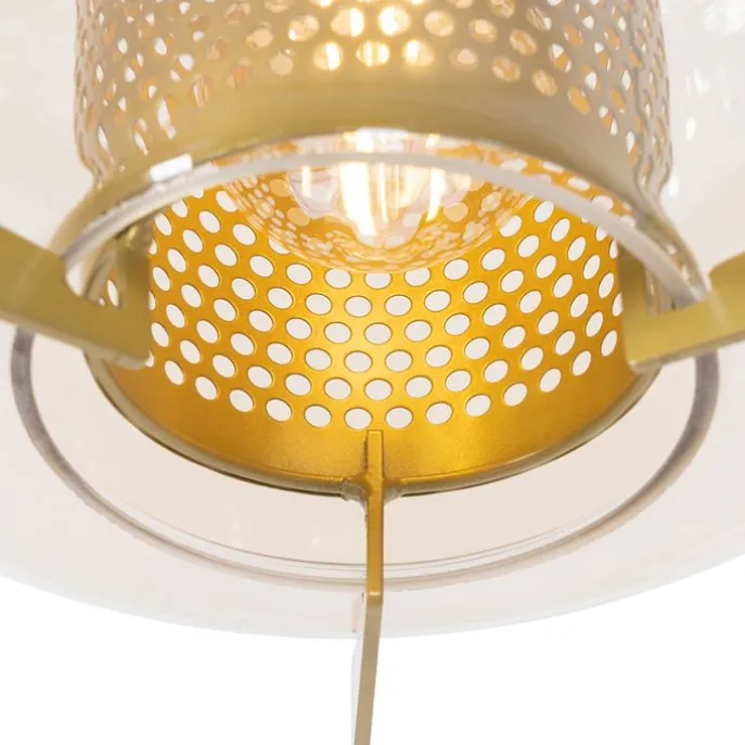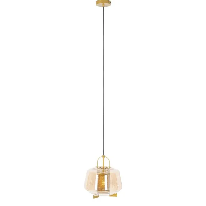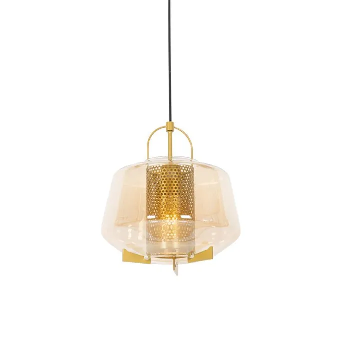 Art deco hanglamp goud met amber glas 30 cm – Kevin
