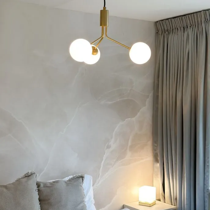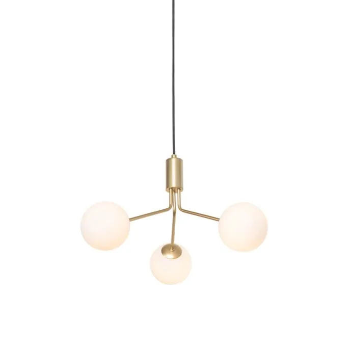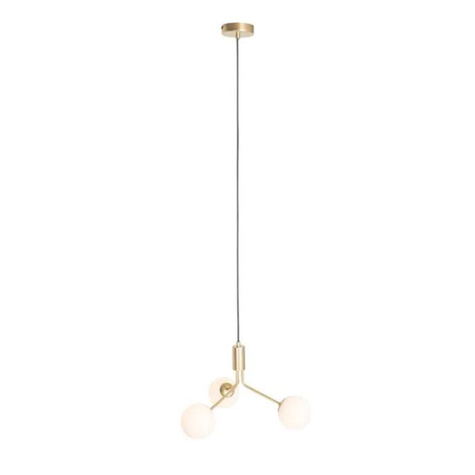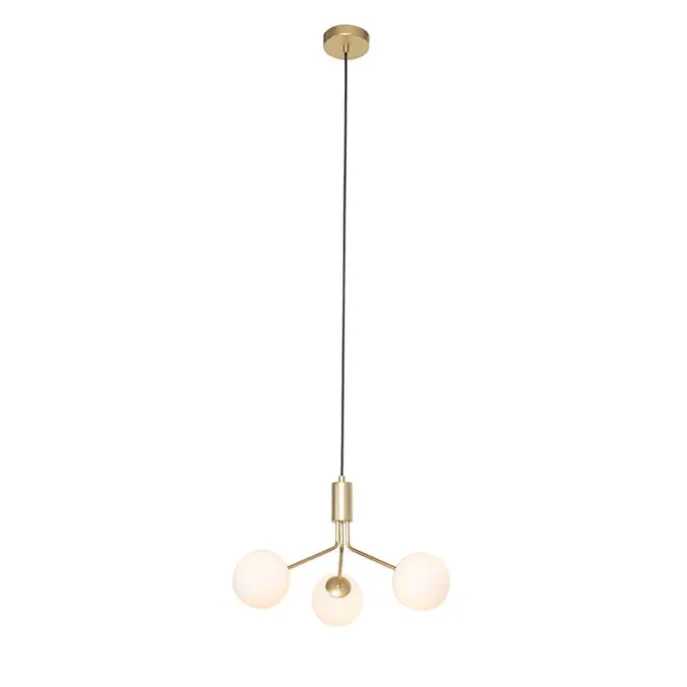 Art Deco hanglamp goud met opaal glas 3-lichts – Coby