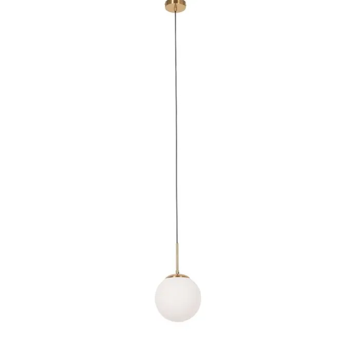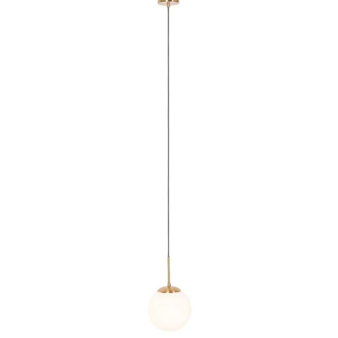 Flore zorgt voor gezellige sfeerverlichting. Deze hanglamp is de perfecte toevoeging in de woonkamer, in de keuken of je thuiskantoor. Hij is afgewerkt met een opvallende gouden kleur en opaal glas. Het opaal glas zorgt voor een aangename en gedimde lichtverdeling. De lamp heeft een totale hoogte van 150 cm en een diameter van 20 cm. Let op: Flore wordt geleverd zonder lichtbron: zorg zelf nog voor een E14 LED lichtbron van max. 40 Watt. Ga voor stijlvol en klasse in huis met deze Art Deco lamp. Zelfs met het licht uit is Flore een blikvanger in huis.