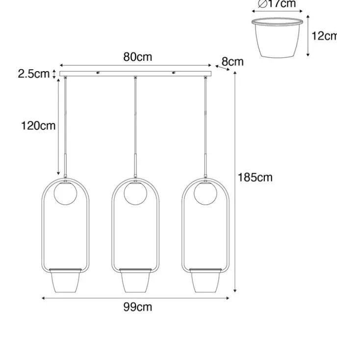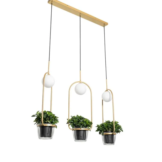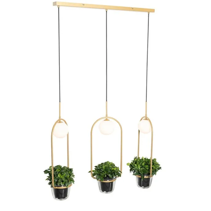 Geen plek om planten neer te zetten? Dan combineert deze hanglamp het beste van twee werelden. Isabella is gemaakt van staal met glas en is afgewerkt in het goud/messing met wit. De hanglamp heeft een diepte van 17 centimeter, is 185 centimeter hoog en heeft een lengte van 99 centimeter. De montageplaat heeft een hoogte van 2,5 centimeter, lengte van 80 centimeter en breedte van 8 centimeter. Wat gezellige groene vrienden kun je hier zeker in kwijt: de plantenpotjes hebben elk een diameter van 17 centimeter en een hoogte van 12 centimeter. Hang je ‘m in bijvoorbeeld de slaapkamer? De lamp is ook nog eens dimbaar, dus dat komt goed uit (dimmer niet inbegrepen). Vergeet niet om nog drie lichtbronnen met G9 fitting (max. 5 watt) erbij te bestellen. The best of both worlds!