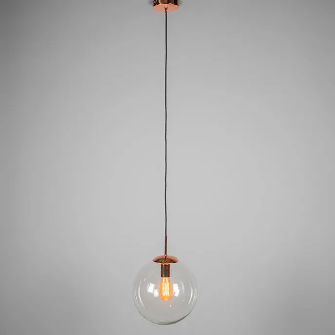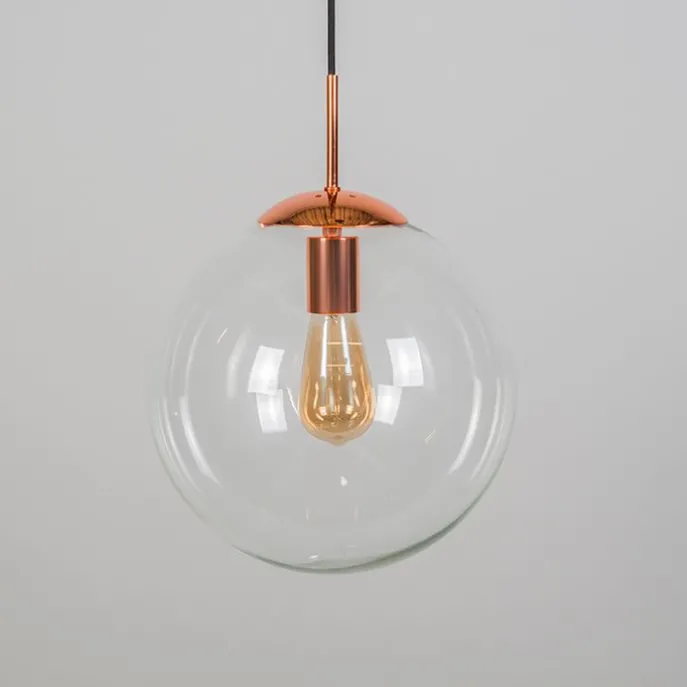 Art deco hanglamp koper met helder glas 30 cm – Ball 30