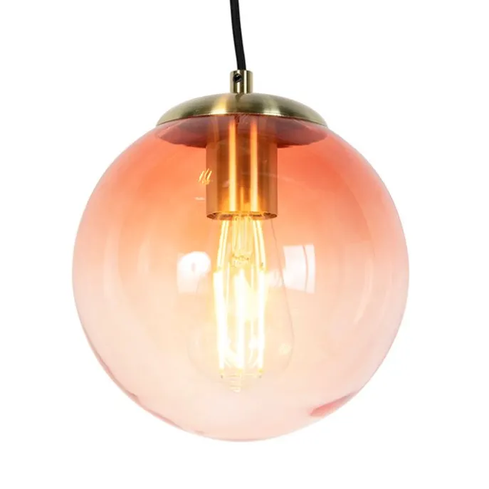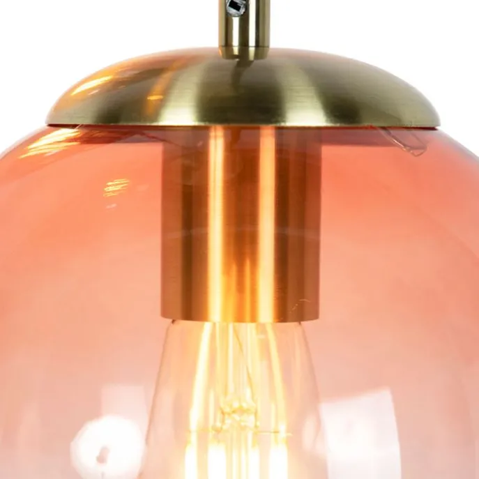 Art deco hanglamp messing 45 cm 3-lichts roze – Pallon