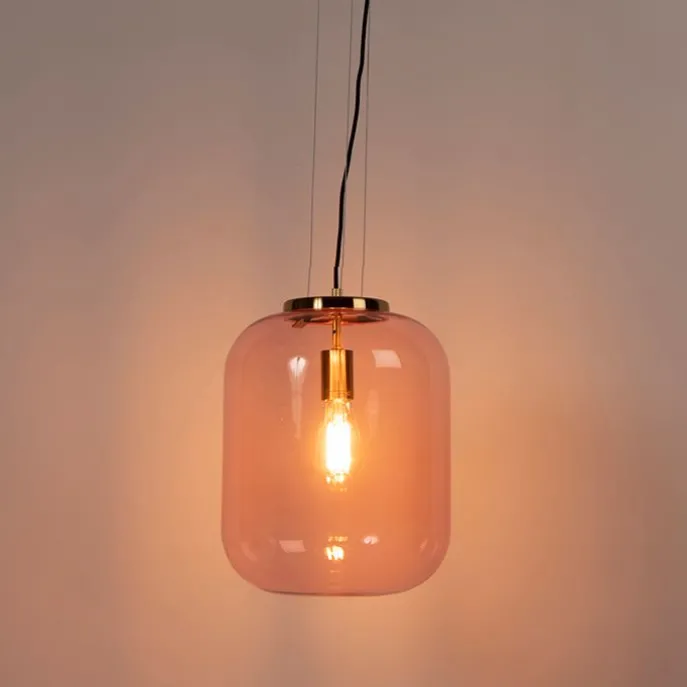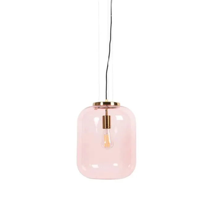 Fleur je interieur op met onze vrolijke Bliss hanglamp. Deze lamp is afgewerkt met lichtroze glas en messing. Deze combinatie maakt hem erg uniek en zorgt voor een Art Deco of retro touch in huis. Het is een gezellige toevoeging in de slaapkamer maar fungeert ook perfect als sfeermaker in de woonkamer of in de hal. De lamp is verstelbaar in hoogte: minimaal 70,5 cm en maximaal 150 cm. Je kan hem dus makkelijk inkorten voor boven de eettafel. De montageplaat heeft een diameter van 12 cm. Het snoer heeft een lengte van 109,5 cm. Je maakt de Bliss compleet met een E27 lichtbron (60 Watt). Hij is tevens dimbaar met een externe dimmer. Erg trendy en sfeervolle lamp in huis!