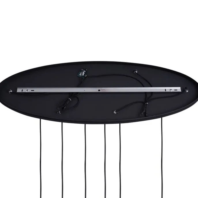 Art deco hanglamp zwart met ovale plafondplaat en smoke glas 6-lichts – Douglass