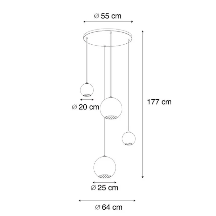 Deze Art Deco hanglamp is een lamp met karakter die elegantie uitstraalt. De ronde, zwarte plafondplaat vormt een stijlvol contrast met de vier rookglazen kappen, die als mysterieuze lichtbollen in de ruimte zweven. Het geribbelde smoke glas zorgt voor een subtiel spel van licht en schaduw, waardoor elke kamer een warme, uitnodigende sfeer krijgt.Bao is niet alleen een lust voor het oog, maar ook een meester in het creëren van de juiste stemming. Of je hem nu boven de eettafel hangt voor een intiem diner of in de hal als statement piece, deze lamp trekt gegarandeerd de aandacht. De verstelbare snoeren geven je bovendien de vrijheid om zelf de perfecte compositie te bepalen.