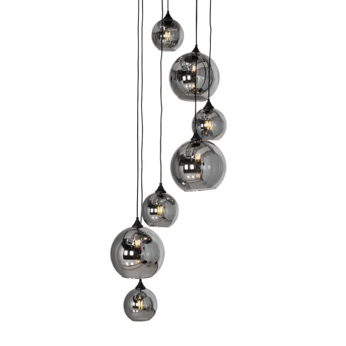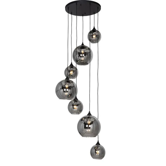 Art deco hanglamp zwart met smoke glas rond 7-lichts – Sandra