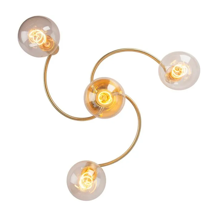 De perfecte keuze voor iedere liefhebber van minimalistische en moderne ontwerpen! Kies voor de onmiskenbare charme die de Facile-serie met zich mee brengt en geef elke ruimte net dat beetje extra charme! De metalen armatuur is afgewerkt in een glanzende goud/messing kleur. Deze plafondlamp wordt zonder lichtbronnen geleverd, zorg er dus voor dat je zelf nog vier grote E27 fitting lichtbronnen G95 (max. 60 Watt) besteld. Lichtbronnen met een goldline afwerking geeft een mooi effect, zelfs al de lamp niet aan is. De plafonnière heeft een diameter van 45 cm en een hoogte van 13 cm.De Facile-serie is verkrijgbaar in een selectie aan verschillende kleuren en variaties.