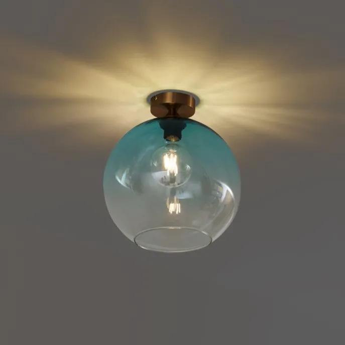 Art Deco plafondlamp messing met blauw glas – Sandra