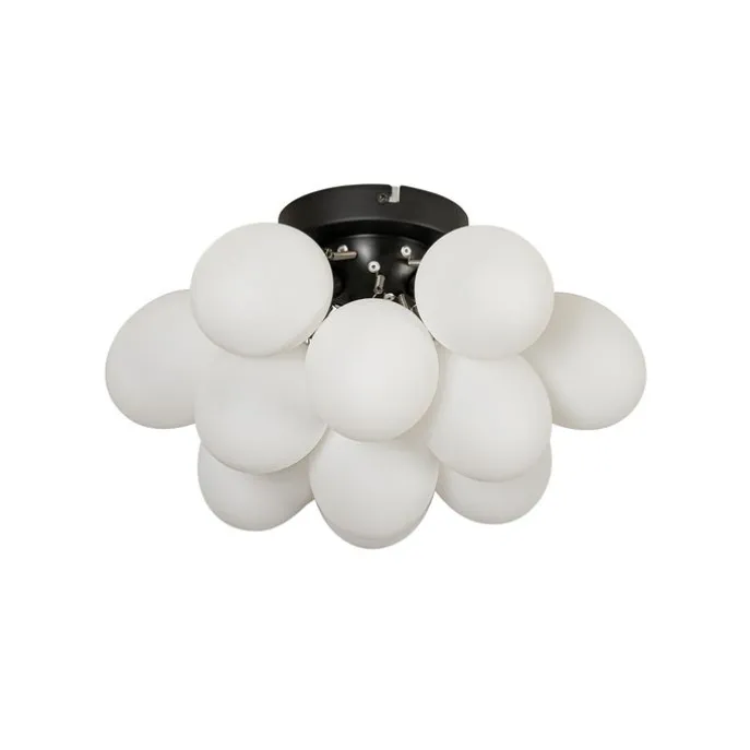 Plafondlamp Uvas is een echte eyecatcher voor in een design interieur! De lamp is gemaakt van glas met staal en is wit met zwart. De 3 lichtpunten maken het een echte sfeermaker! Uvas heeft een diameter van 30 cm en een hoogte van 32 cm. Zorg dat je lichtbronnen met G9 fitting erbij besteld om de lamp compleet te maken. Behoefte aan wat minder licht? Uvas is dimbaar, maar een dimmer is niet inbegrepen. Of je nu de woonkamer, slaapkamer, keuken of hal wilt verlichten, Uvas voelt zich overal thuis en voegt een vleugje stijl toe. Zit niet langer in het donker en ga voor Uvas.