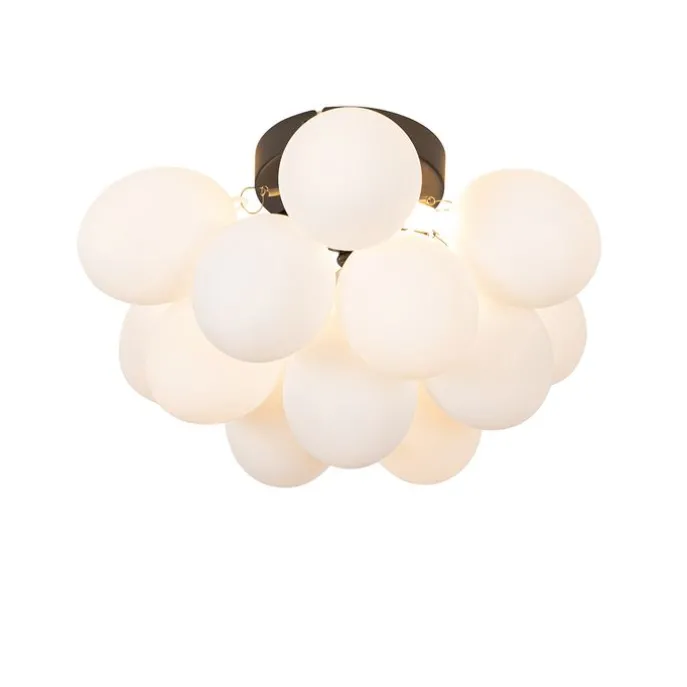 Art deco plafondlamp zwart met opaal glas 3-lichts – Uvas
