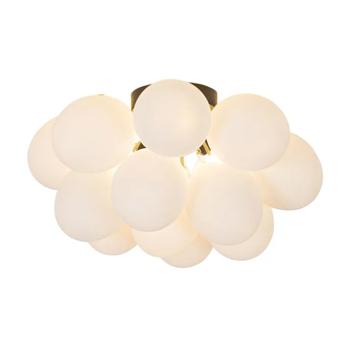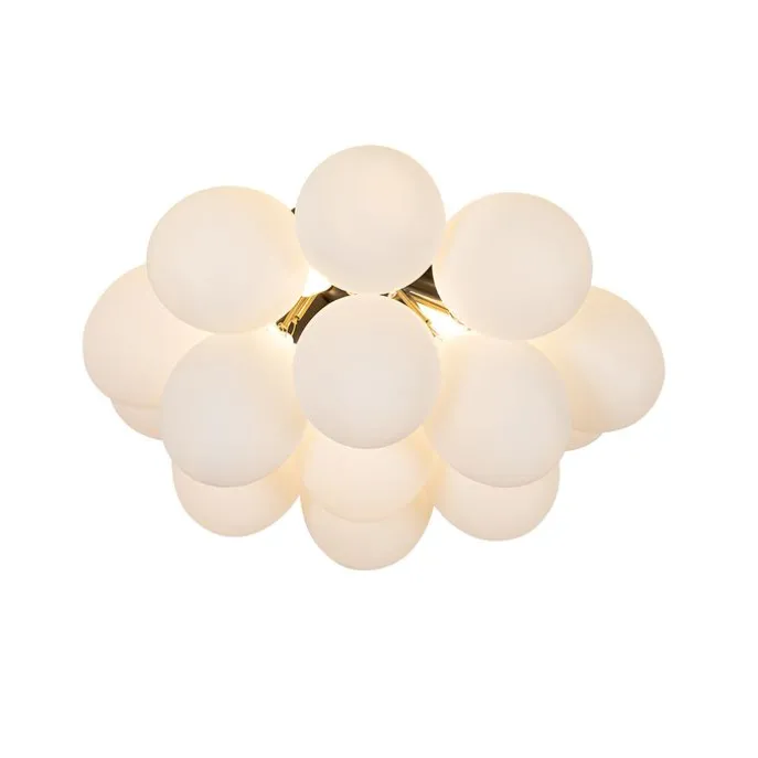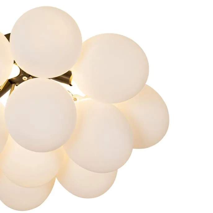 Art deco plafondlamp zwart met opaal glas 4-lichts – Uvas