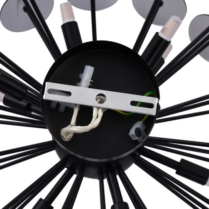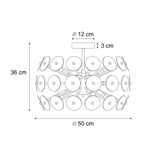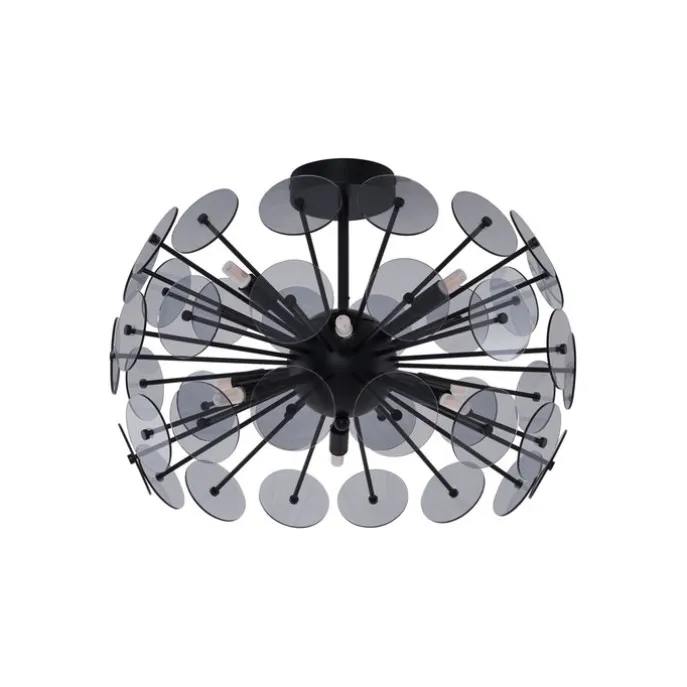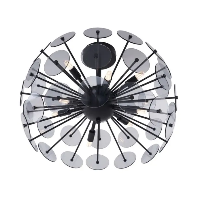 Maak een gedurfde designstatement in je interieur met de Atomic Art Deco plafondlamp! Deze spectaculaire lamp in matzwart met smoke-glas straalt luxe en elegantie uit. Het unieke ontwerp, geïnspireerd op een atoomstructuur, combineert een moderne uitstraling met subtiele retro-invloeden. De talloze glazen schijven in rookkleur zorgen voor een verfijnd spel van licht en schaduw, waarmee je elke ruimte een warme en sfeervolle gloed geeft. Atomic is perfect als blikvanger in je woonkamer, eetkamer of hal, en creëert een indrukwekkend middelpunt dat gegarandeerd de aandacht trekt. Met meerdere lichtbronnen biedt deze lamp niet alleen esthetiek, maar ook functionele verlichting. Combineer het met dimbare lampen voor nog meer sfeer en flexibiliteit. Breng jouw interieur tot leven met de Atomic plafondlamp. Bestel nu en voeg een vleugje glamour en design toe aan je huis!