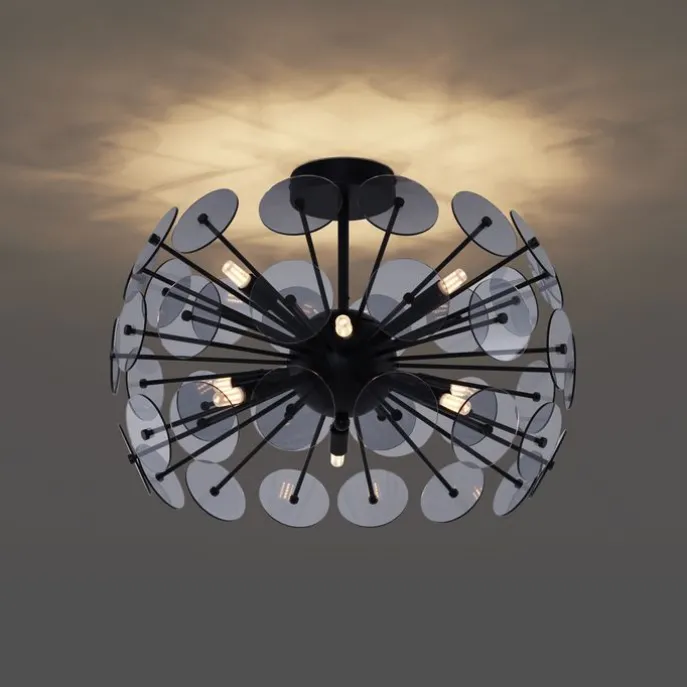 Art Deco plafondlamp zwart met smoke – Atomic