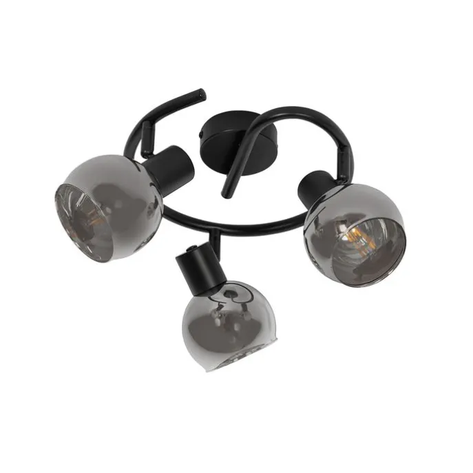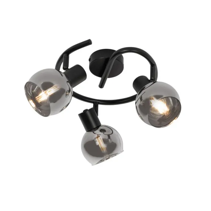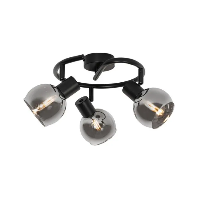 Art Deco plafondlamp zwart met smoke glas 3-lichts rond – Vidro