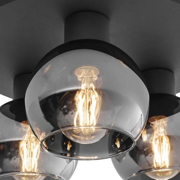 Art Deco plafondlamp zwart met smoke glas 3-lichts – Vidro