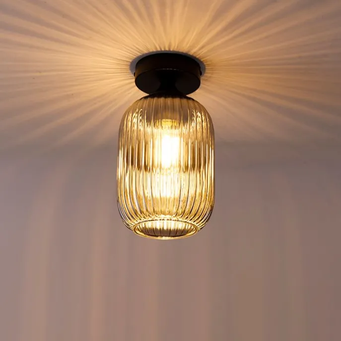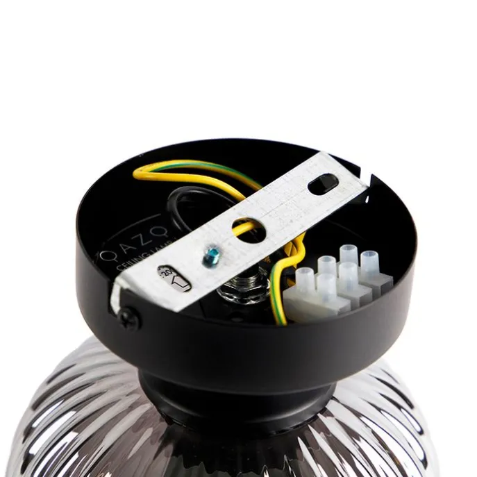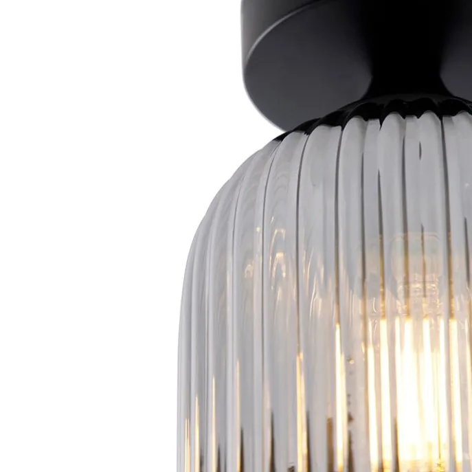 Plafondlamp Banci is een echte sfeermaker! Doordat het glas geribbeld is en een smoke effect heeft, geeft de lamp warm en sfeervol licht. Banci is gemaakt van glas en zwart staal. Hij heeft een hoogte van 24,5 cm en een diameter van 14 cm. De montageplaat heeft een hoogte van 2,5 cm en een diameter van 10 cm. Je maakt de plafondlamp compleet met een lichtbron met E27 fitting (max. 25 Watt). Zorg dat je deze er nog los bij besteld. De lamp is dimbaar met een externe dimmer, deze is niet inbegrepen. Banci komt het beste tot zijn recht in een Art Deco interieur. In de woonkamer, slaapkamer of hal bijvoorbeeld. Banci is de sfeermaker die je zoekt!