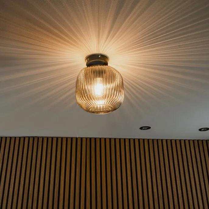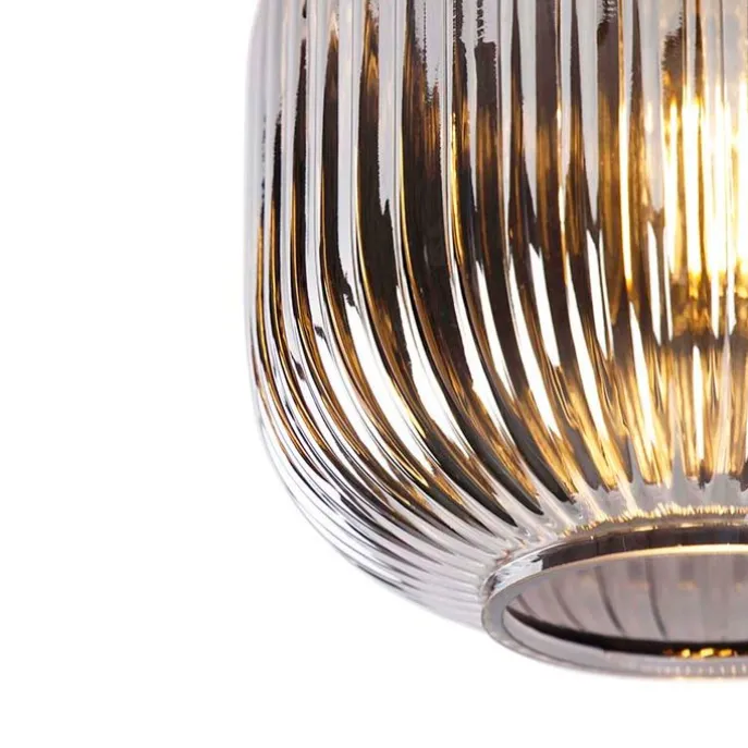 Onze Karel plafondlamp is luxueus afgewerkt met smoke glas en tijdloos zwart. Het excentrieke design van Karel steelt de show in elke ruimte in huis! Het geribbelde glas zorgt voor diffuus licht in je woon- of slaapkamer. Deze plafondlamp kan ook perfect worden gebruikt als basisverlichting in je hal of in je keuken. De lamp heeft een diameter van 20 cm en een hoogte van 23 cm. De montageplaat heeft een diameter van 10 cm. Zorg nog voor een opvallende E27 lichtbron van max. 25 Watt. Let op: deze lichtbron is niet inbegrepen en moet je nog apart bij bestellen! Hij is dimbaar met een externe dimmer (niet inbegrepen). Een prachtige toevoeging in huis!