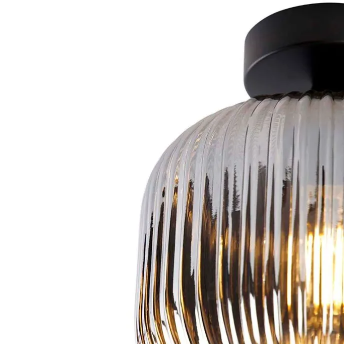 Art deco plafondlamp zwart met smoke glas – Karel