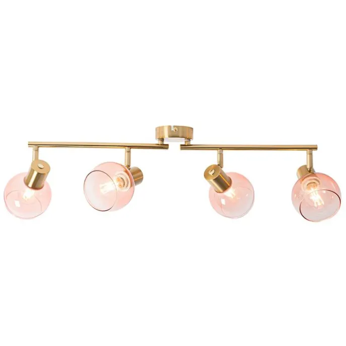 Art Deco spot goud met roze glas 4-lichts – Vidro