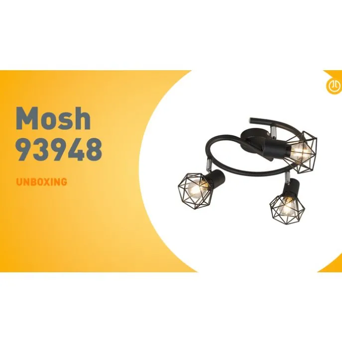 Dit is spot Mosh 3 in een stoere zwarte kleur uitgevoerd! Het minimalistische stalen frame leent zich bij uitstek voor een fraaie decoratieve lichtbron die gezien mag worden! Om nog meer sfeer te creëren is de lamp tevens dimbaar met een externe dimmer (dimmer niet inbegrepen). Maak deel uit van de trendsetters en verlicht je woning of kantoor in stijl!Deze spot is heel gemakkelijk verstelbaar via het kogelscharnier. Hierdoor kan deze plafondlampjes alle kanten op schijnen. De lamp heeft een hoogte van 18,5 cm en een diameter van 43 cm. De montageplaat heeft een diameter van 8 cm. Deze spot heeft drie kleine E14 fittingen en wordt exclusief lichtbronnen geleverd, zorg dat je deze er dus nog bij besteld (max. 40 Watt per lichtbron). Maak je interieur compleet met de Mosh 3!