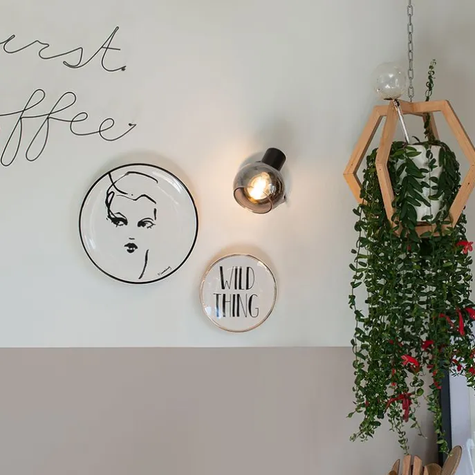 Art Deco spot zwart met smoke glas – Vidro