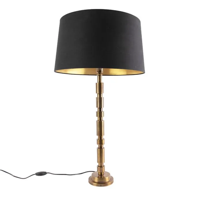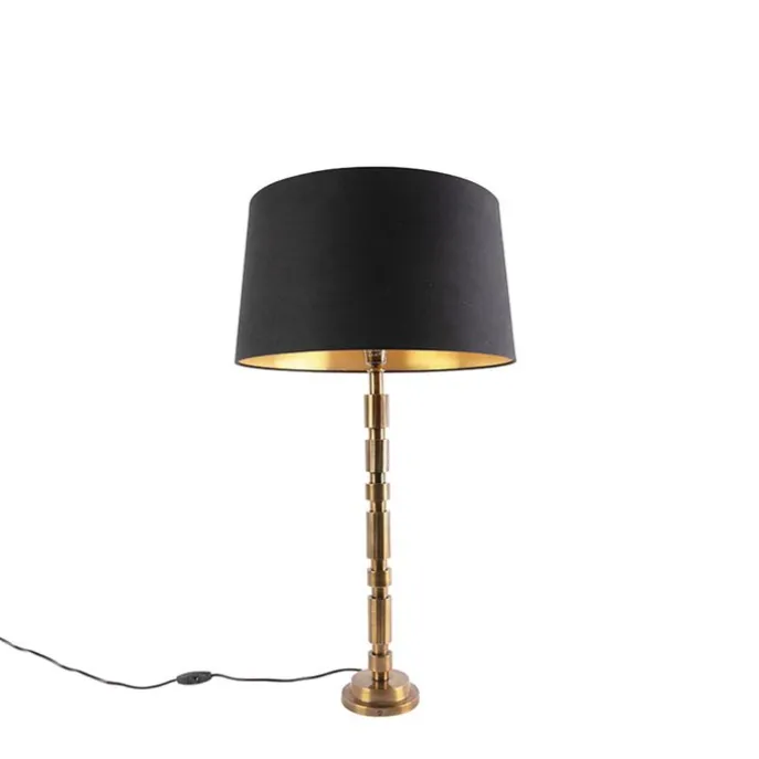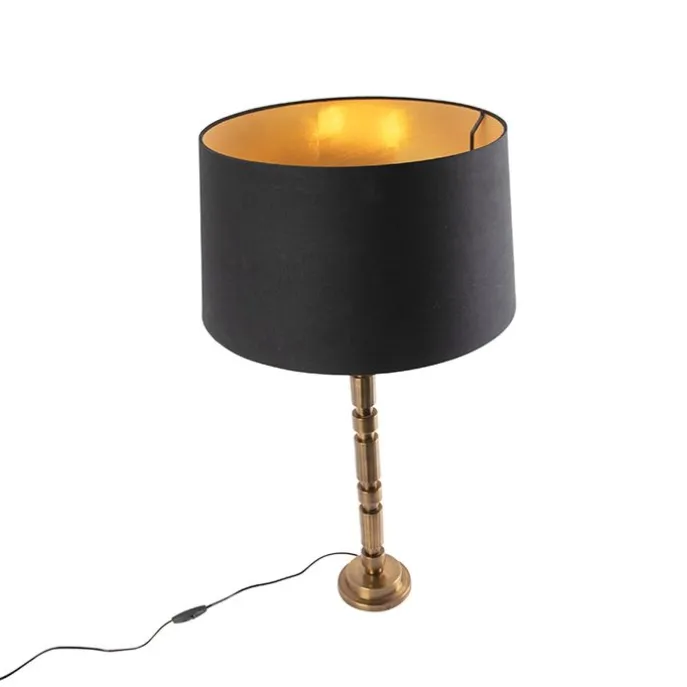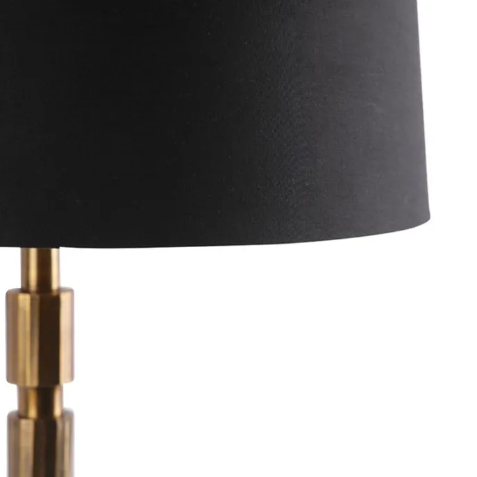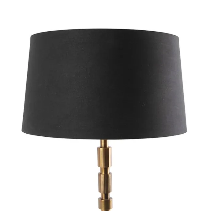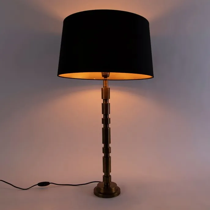 Art deco tafellamp brons met katoenen kap zwart 45 cm – Torre