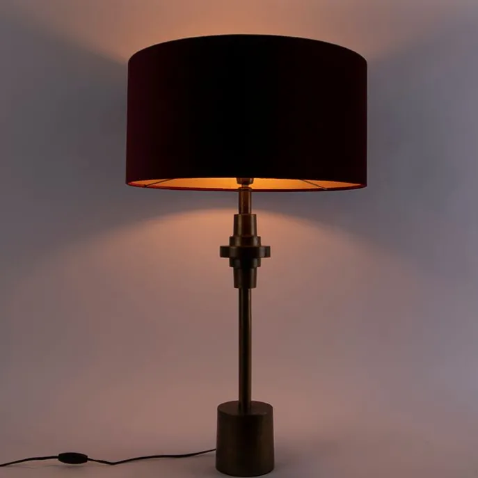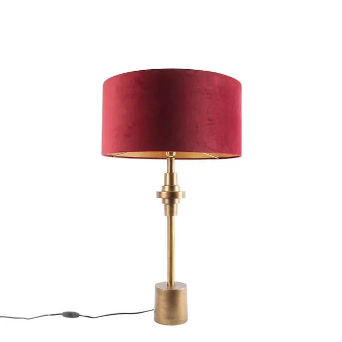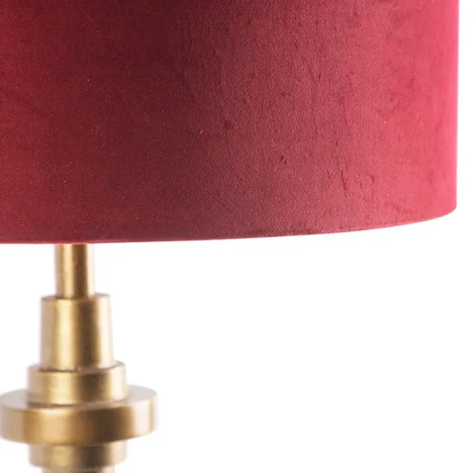 Art Deco tafellamp brons velours kap rood 50 cm – Diverso