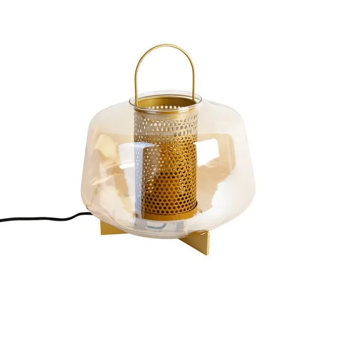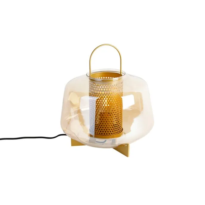 Art deco tafellamp goud met amber glas 30 cm – Kevin