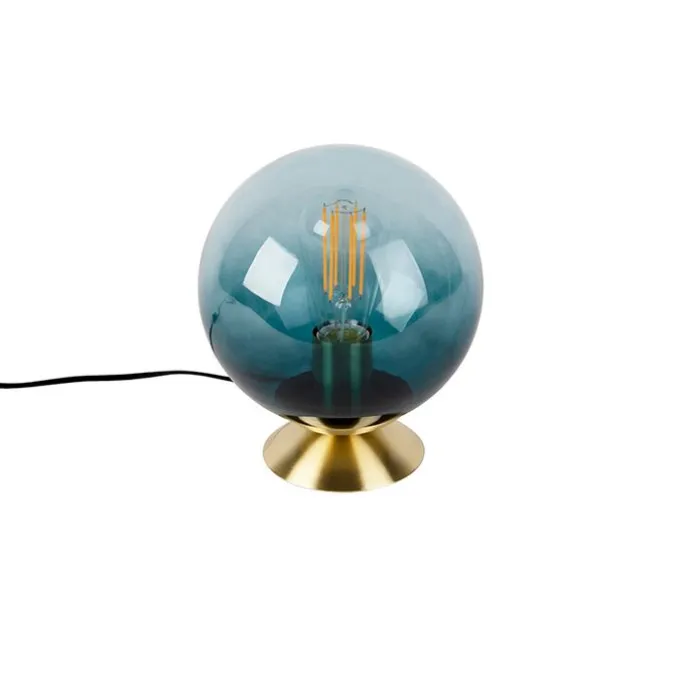 Art deco tafellamp messing met oceaanblauw glas – Pallon