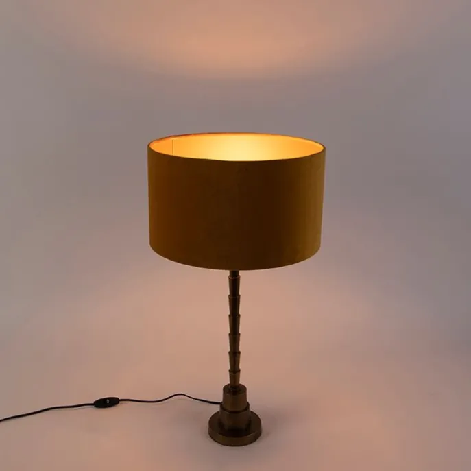 Art deco tafellamp met velours kap geel 35 cm – Pisos