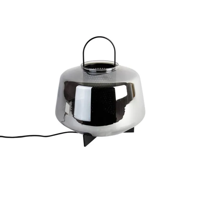 Elegantie en gezelligheid: dat is onze tafellamp Kevin. Hij is mooi afgewerkt met smoke glas, waardoor je een diffuus licht verkrijgt. Het is een makkelijk verplaatsbare tafellamp die zich thuis voelt in jouw slaapkamer als nachtlampje, in de woonkamer of in de hal als sfeerlamp. Plaats hem in je thuiskantoor als blikvanger. De lamp heeft een hoogte van 32,5 cm en een diameter van 30 cm. De lamp wordt geleverd met snoer en stekker (200 cm). Maak je Kevin tafellamp compleet met een E27 lichtbron van max. 40 Watt en geniet van het sfeervolle licht van deze sfeermaker! Let op: de lichtbron wordt niet meegeleverd, deze moet je nog apart bij bestellen. Ga voor meer sfeer met onze Kevin!