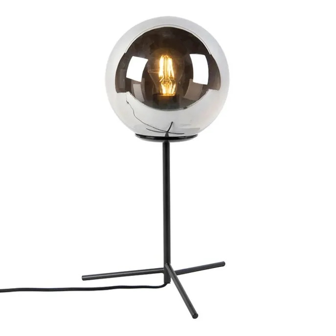 Art deco tafellamp zwart met smoke glas 45,5 cm – Pallon