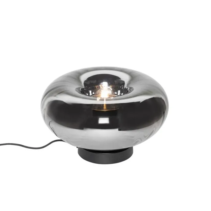 Art Deco tafellamp zwart met smoke glas – Ayesha