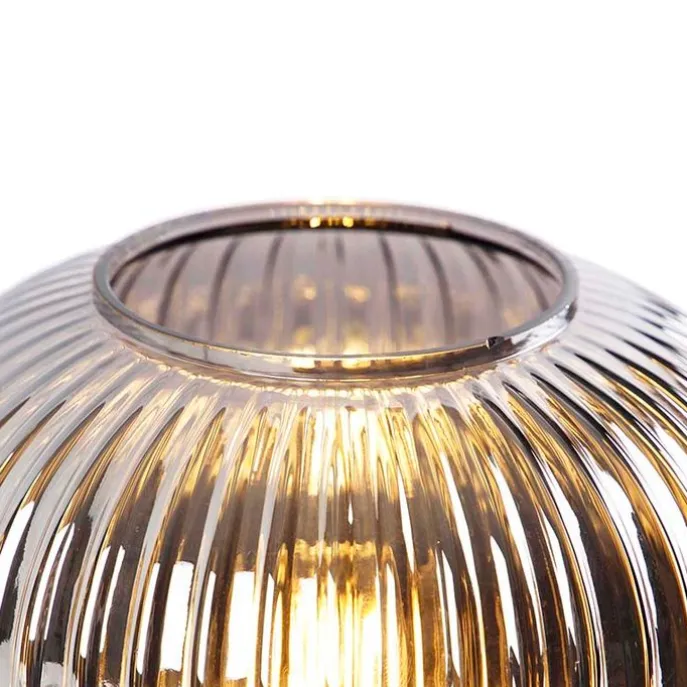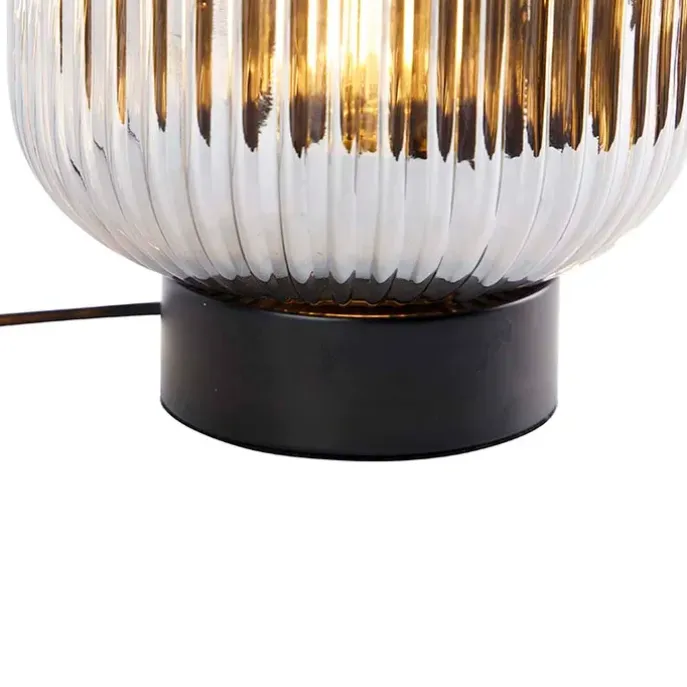 Deze leuke tafellamp is luxueus afgewerkt met smoke glas en tijdloos zwart. Het excentrieke design van Karel steelt de show in elke ruimte in huis! Het geribbelde glas zorgt voor diffuus licht in je woon- of eetkamer. Het is een perfect sfeerlampje voor op de slaapkamer! De lamp heeft een diameter van 20 cm en een hoogte van 22 cm. Het bijgeleverde snoer is 200 cm lang. Zorg nog voor een opvallende E27 lichtbron van max. 25 Watt. Let op: deze lichtbron is niet inbegrepen en moet je nog apart bij bestellen! Hij is dimbaar met een externe dimmer (niet inbegrepen). Een prachtige toevoeging in huis!