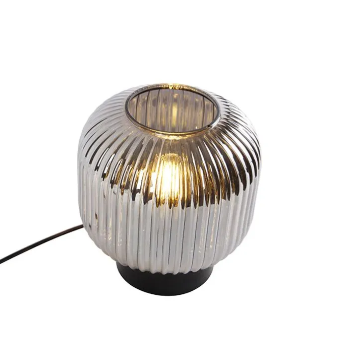 Art Deco tafellamp zwart met smoke glas – Karel