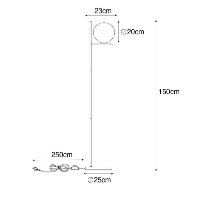 Flore zorgt voor gezellige sfeerlichting in je interieur. Deze vloerlamp is een echte toevoeging in je woonkamer of in je thuiskantoor als gezellig lichtpunt. Hij is afgewerkt met een gouden armatuur en opaal glas. Het opaal glas zorgt voor een aangename lichtverdeling. Let op: de vloerlamp wordt geleverd zonder lichtbron: zorg zelf nog voor een E27 lichtbron van max. 40 Watt. De lamp heeft een hoogte van 150 cm en een diameter van 25 cm. De snoerlengte is 250 cm lang, zo kan je je Flore vloerlamp makkelijk verplaatsen. Ga voor stijlvol en klasse in huis met deze Art Deco lamp! Zelfs met het licht uit is deze Flore een blikvanger in huis.