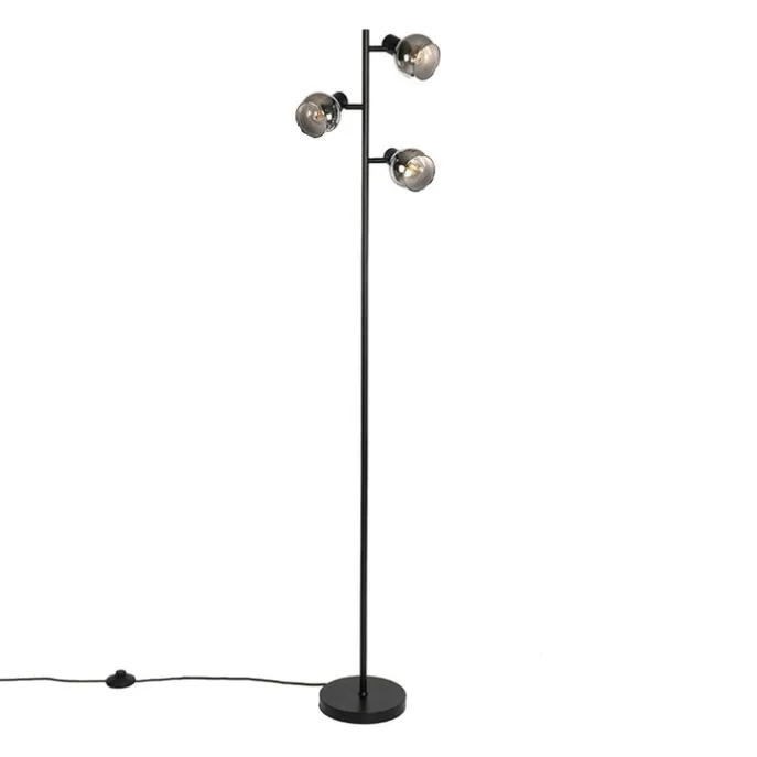 Art Deco vloerlamp zwart 3-lichts met smoke glas – Vidro