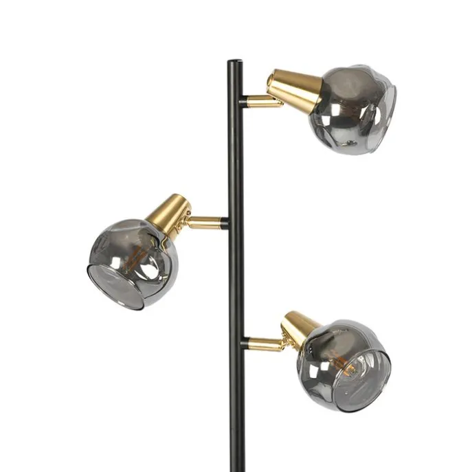 Art deco vloerlamp zwart en goud met smoke glas 3-lichts – Vidro