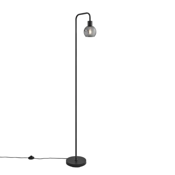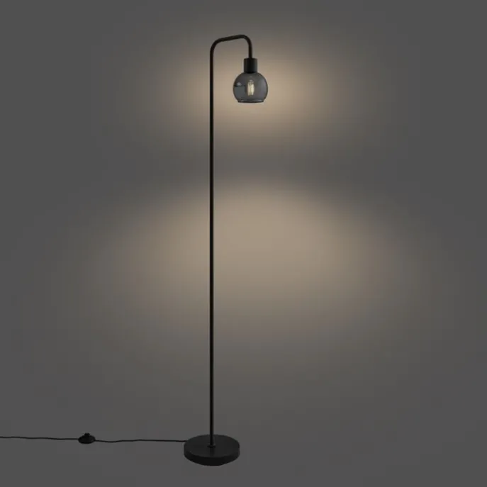 Art Deco vloerlamp zwart met smoke glas – Vidro