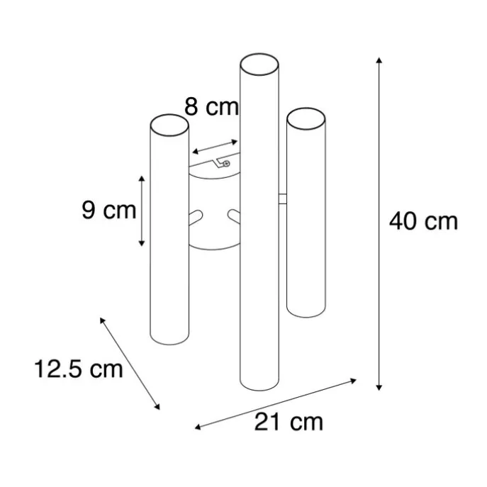 Wauw wat een chique wandlamp is dit! Tubi heeft een luxe uitstraling door zijn stalen armatuur die afgewerkt is in het zwart. Doordat de verlichting zowel naar boven als naar onder schijnt krijg je een prachtig lichteffect op de wand. De wandlamp heeft een diepte van 12,5 cm, hoogte van 40 cm en lengte van 21 cm. De montageplaat heeft een diepte van 4 cm, hoogte van 9 cm en lengte van 8 cm. Je maakt Tubi compleet met 6 lichtbronnen, deze dienen ieder een E27 fitting (max. 40 Watt) te hebben. Vergeet deze er niet nog los bij te bestellen. Om meer sfeer te creëren in de ruimte kun je de lamp aansluiten op een dimmer (niet inbegrepen). Tubi is een mooie wandlamp voor in de hal, slaapkamer of woonkamer. Maak je interieur af met deze chique wandlamp!