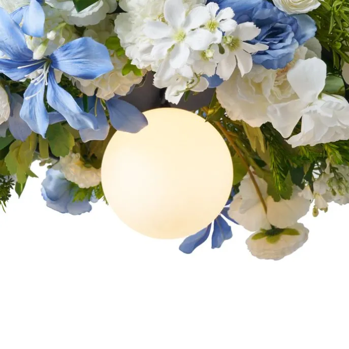 Breng kleur en karakter in je interieur met deze unieke Bohemian plafondlamp uit de Flower Power-serie. De combinatie van een strak zwart armatuur, wit glas en sierlijke blauwe en witte bloemen zorgt voor een verrassend speels effect dat direct de aandacht trekt. Deze lamp is niet zomaar een lichtbron, maar een waar kunstwerk aan je plafond.De subtiele bloemendetails geven een vrolijke, bijna dromerige sfeer aan de ruimte, terwijl het witte glas zorgt voor een zachte, gelijkmatige lichtverspreiding. Perfect voor wie houdt van een interieur met een persoonlijke twist en een knipoog naar retro en boho-invloeden.