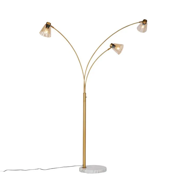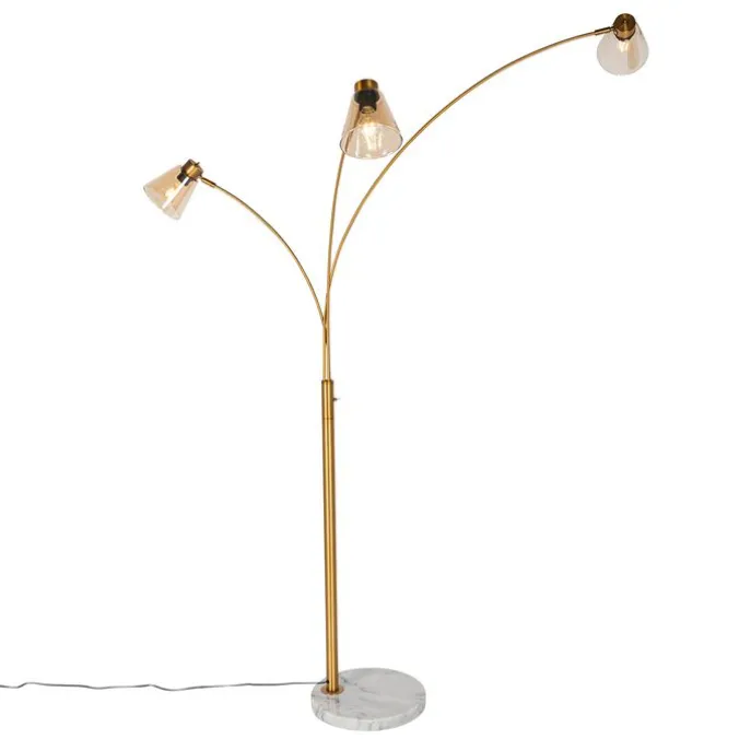 Booglamp brons met marmer en amber glas 3-lichts – Nina