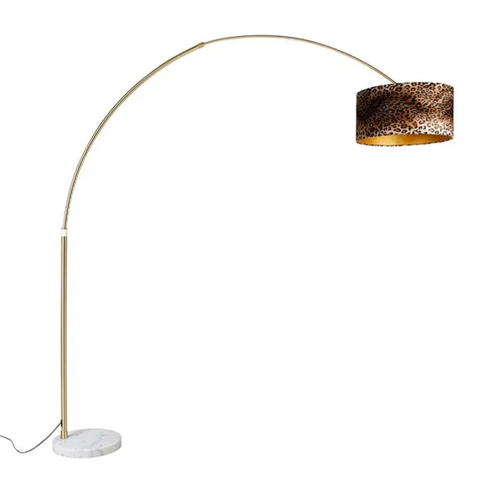 Booglamp messing met wit stoffen kap luipaard 50 cm – XXL