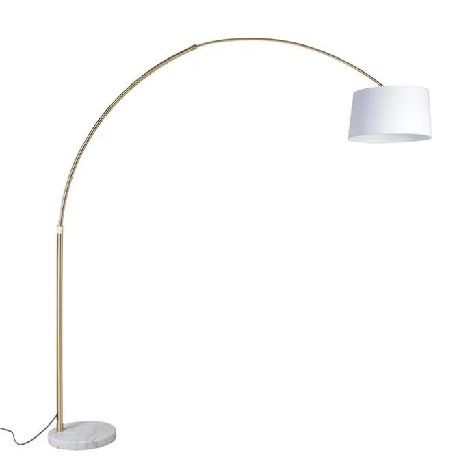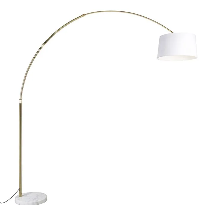 Booglamp messing met wit stoffen kap wit 50 cm – XXL