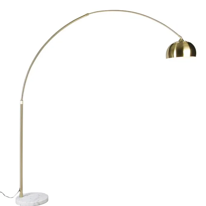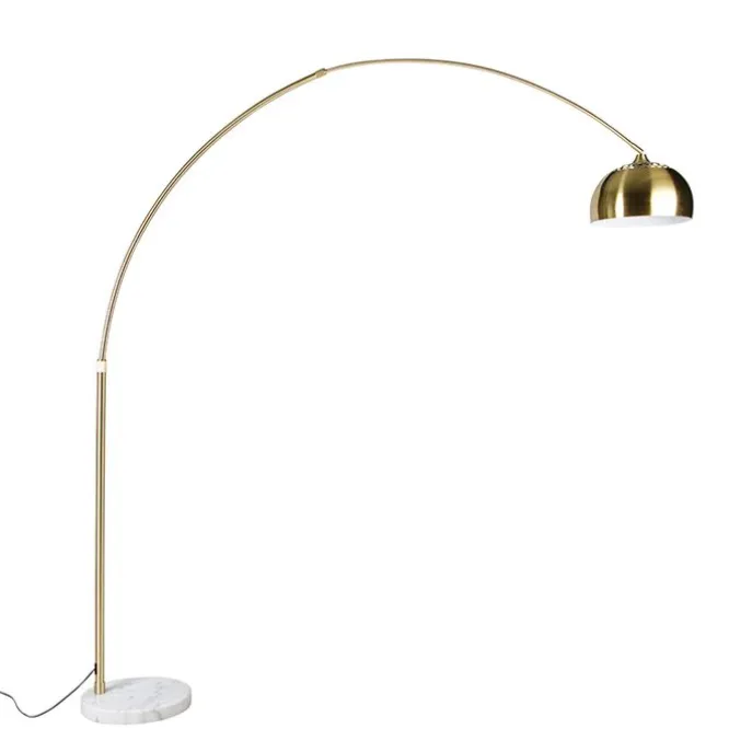 Booglamp messing met witte marmeren voet verstelbaar – XXL