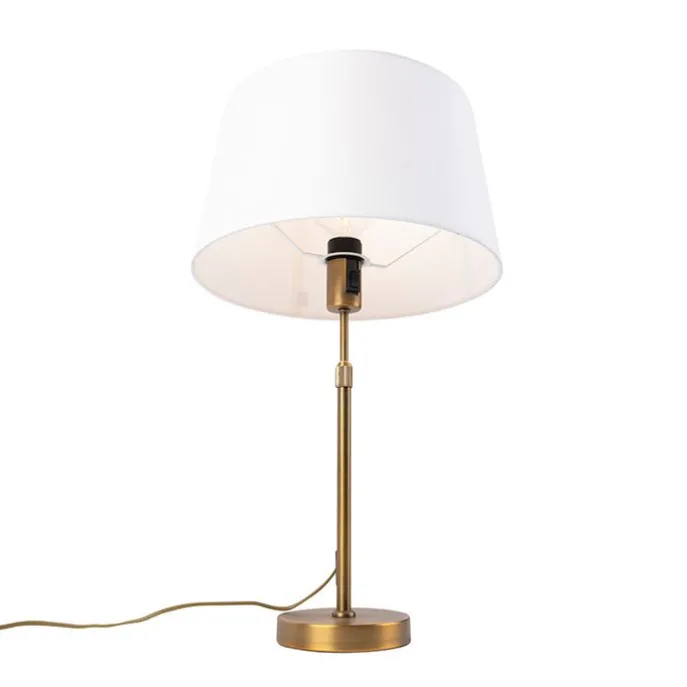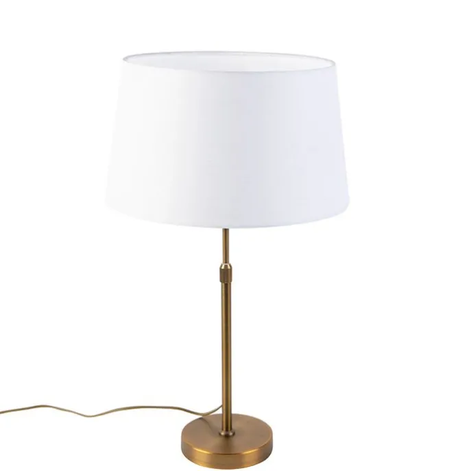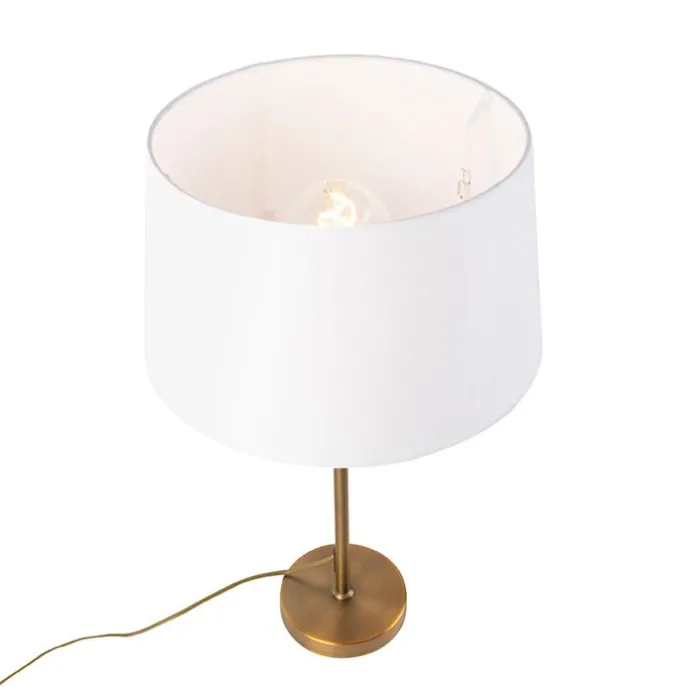 Bronze tafellamp met linnen kap wit 35cm – Parte