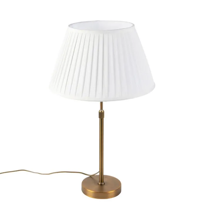 Bronze tafellamp met plisse kap wit 35cm – Parte